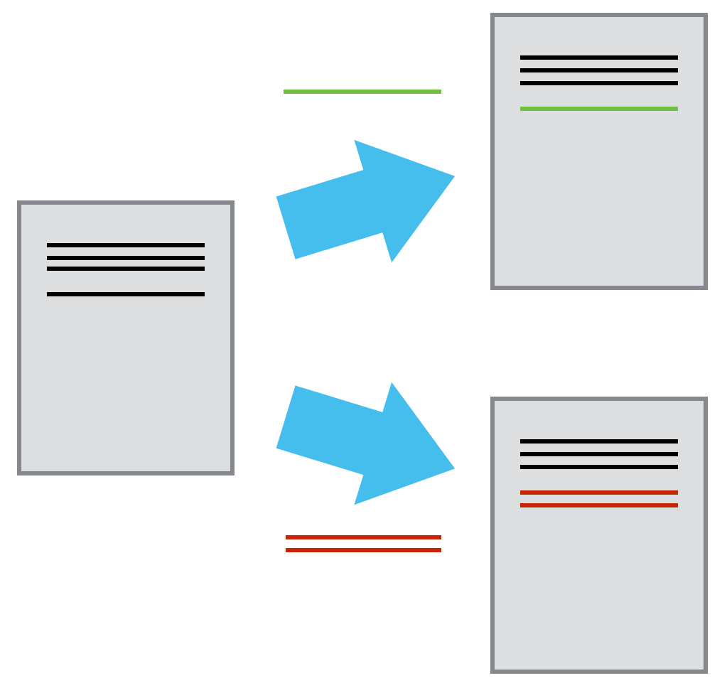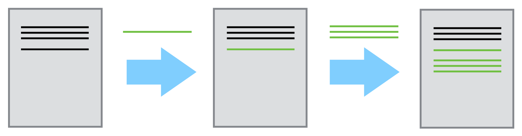 Once you think of changes as separate from the document itself, you can then think about “playing back” different sets of changes onto the base document and getting different versions of the document. For example, two users can make independent sets of changes based on the same document.